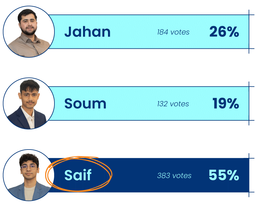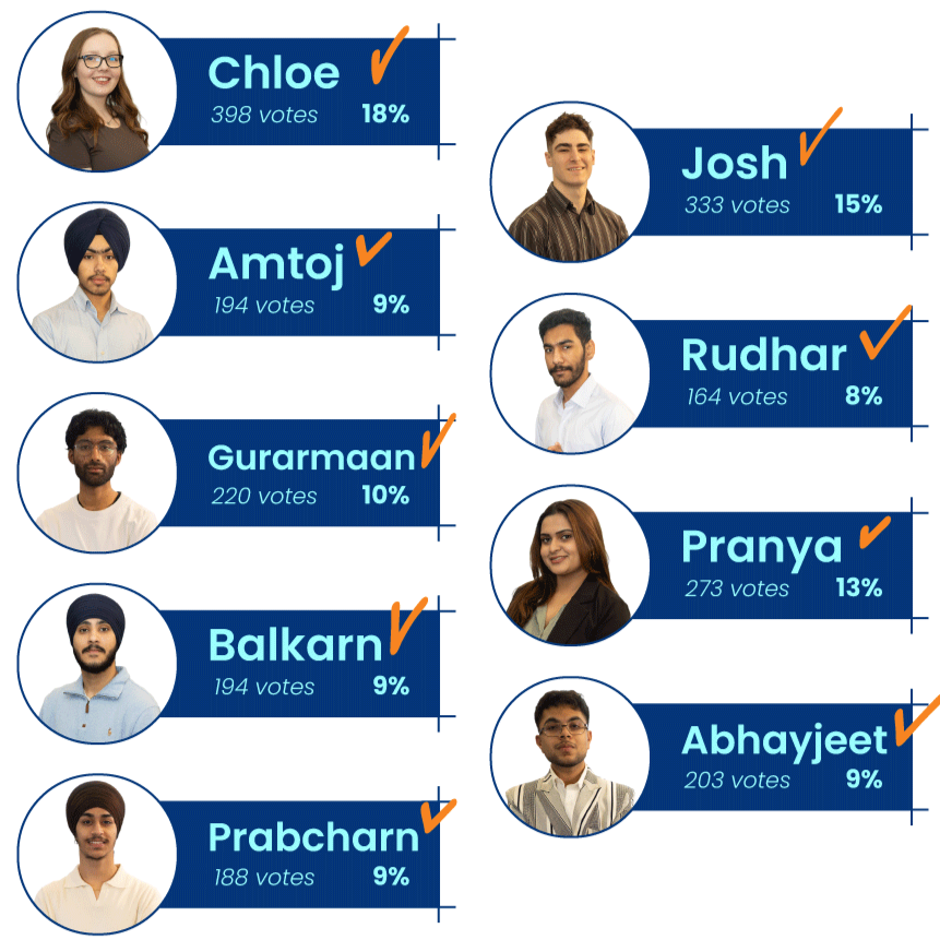 A unique voting ballot will be sent to your student email. Make your voice heard by participating during the voting period